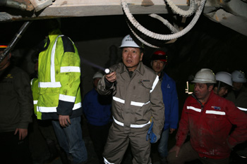 慰問期間,集團(tuán)領(lǐng)導(dǎo)一行乘坐軌道車深入到距離洞口7.4km的輸水隧洞出口段施工現(xiàn)場(chǎng),仔細(xì)察看了TBM維修當(dāng)前開挖掌子面巖性和主洞、旁通洞第三段人工鉆爆施工狀況,要求參建各方加強(qiáng)溝通協(xié)調(diào),縝密安排施工計(jì)劃,強(qiáng)化現(xiàn)場(chǎng)管理,高度重視安全工作,切實(shí)加快施工進(jìn)度和TBM改造工作,合理規(guī)劃,統(tǒng)籌兼顧,為TBM盡早啟動(dòng)掘進(jìn)創(chuàng)造條件。