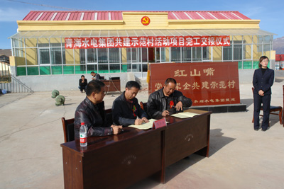 海北州州委常委、門源縣縣委書記董金明,門源縣委常委、組織部部長(zhǎng)尹京輝,青海水電集團(tuán)總經(jīng)理、“黨政軍企共建示范村”活動(dòng)領(lǐng)導(dǎo)小組組長(zhǎng)王海青,集團(tuán)公司黨委副書記、工會(huì)主席李建民,集團(tuán)計(jì)劃投資部副部長(zhǎng)李宏緒等參加了交接儀式。