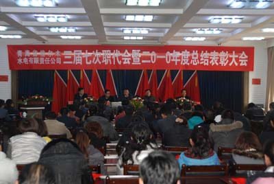 上午9時(shí)30分,大會(huì)在莊嚴(yán)的國(guó)歌聲中開(kāi)幕。會(huì)上,于宗甲同志作了《立足企業(yè)實(shí)際,實(shí)現(xiàn)新的跨越—努力開(kāi)創(chuàng)企業(yè)和諧健康發(fā)展新局面》的工作報(bào)告,從三個(gè)方面總結(jié)了格水電2010年的主要工作,并從三個(gè)方面安排了2011年的工作。客觀詳實(shí)地總結(jié)了格水電一年來(lái)的工作,充分肯定了過(guò)去一年工作的成績(jī)和基本經(jīng)驗(yàn),明確提出了新的一年的工作指導(dǎo)思想、奮斗目標(biāo)和主要任務(wù),全面部署了今后的主要生產(chǎn)經(jīng)營(yíng)目標(biāo);技改及維護(hù)項(xiàng)目;建立健全生產(chǎn)經(jīng)營(yíng)機(jī)制,進(jìn)一步強(qiáng)化安全生產(chǎn)管理,實(shí)現(xiàn)企業(yè)高效、安全、節(jié)約運(yùn)行;切實(shí)加強(qiáng)黨建和精神文明建設(shè),描繪了公司未來(lái)發(fā)展的前景。