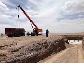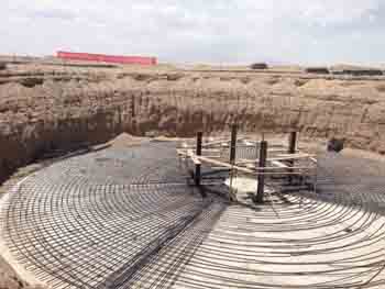 該風電場項目位于海西州茫崖石棉礦區南部,規劃裝機容量200兆瓦,總投資約25億元,擬分兩期實施。一期項目先行裝機20兆瓦,共安裝8臺2.5兆瓦的風電機組,投資約3億元。其發電機組及附屬設備由東方電氣股份有限公司中標供應,基礎工程由青海水電實業有限責任公司中標承建,風電塔架設備由中國水利水電第四工程局有限公司中標供應,甘肅三維水電工程建設監理有限公司青海分公司負責監理工作。經過青海水電集團茫崖風電有限公司認真籌劃和精心準備,該項目于5月5日開工。截至6月26日,開挖直徑22米、深4米的機組基礎開挖、墊層混凝土澆筑及基礎環安裝全部完成,目前正在加緊進行底座鋼筋混凝土澆施工,預計8月底開始塔筒和機組安裝工作,10月底具備調試和試運行條件。